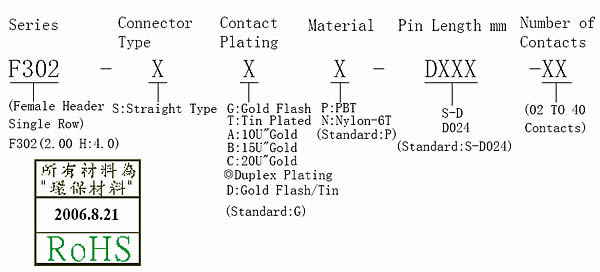 F302-SG_-D024-XX 2.0 Female Header 180°單排